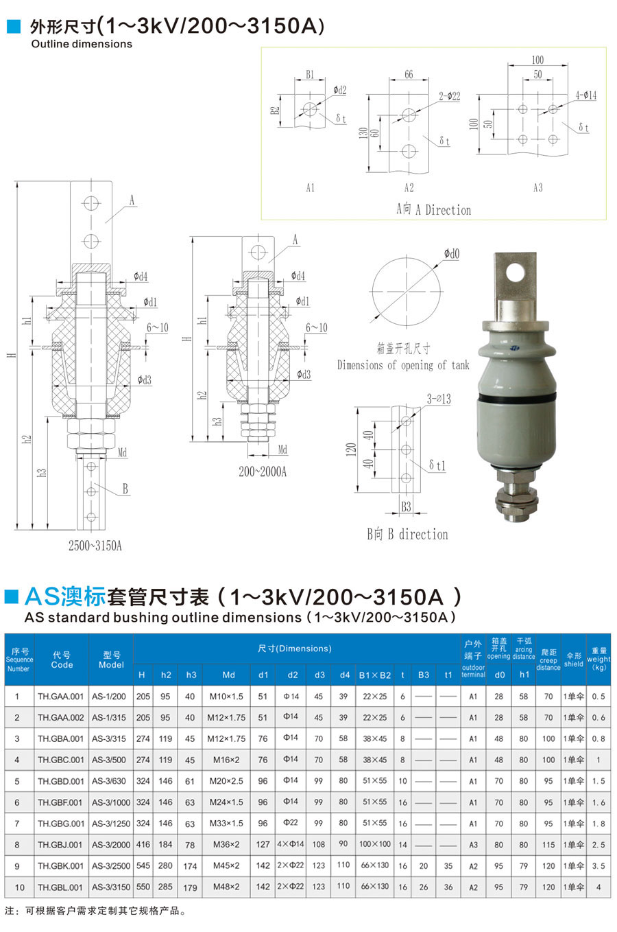 AS澳標(biāo)套管1~3kV/200~3150A