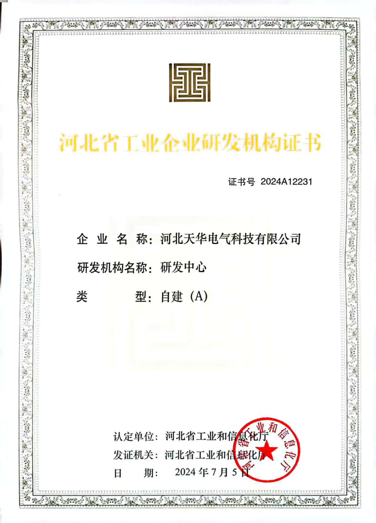 河北省工業(yè)企業(yè)研發(fā)機(jī)構(gòu)證書A級(jí)