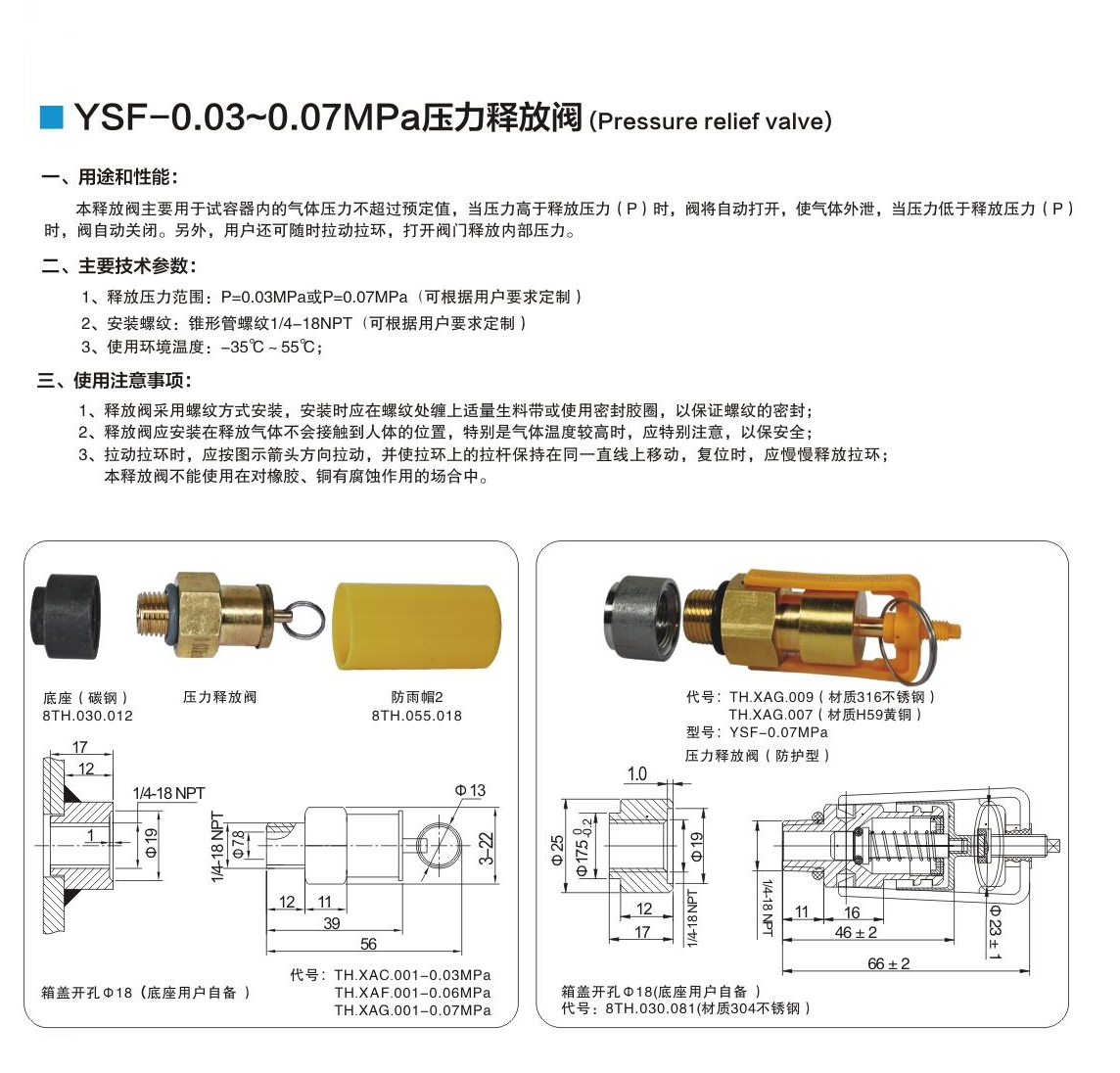 YSF-0.03MPa~0.07MPa 壓力釋放閥