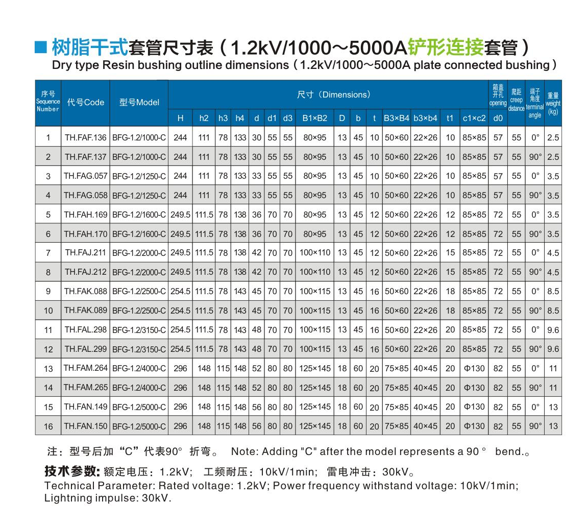 樹脂干式套管1.2kV/1000~5000A鏟形連接