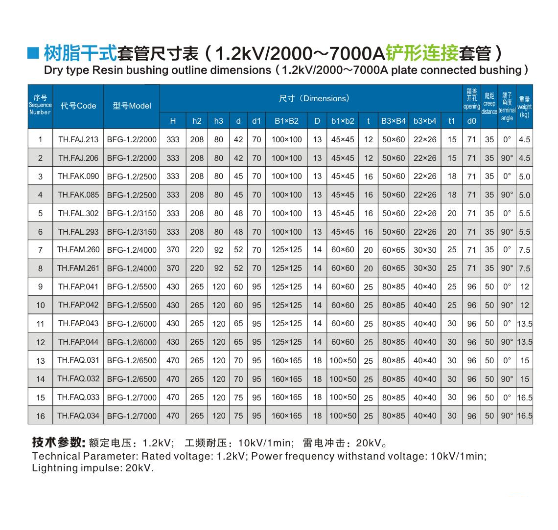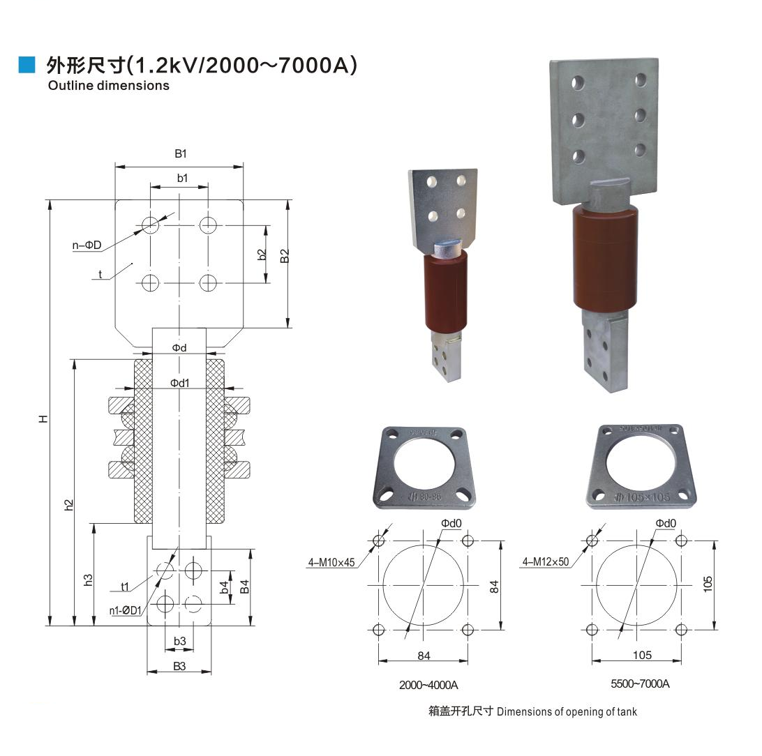 樹(shù)脂干式套管1.2kV/2000~7000A鏟形連接套管