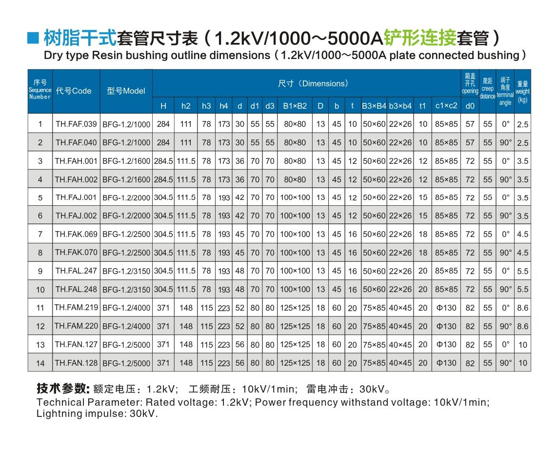 樹脂干式套管1.2kV/1000~5000A鏟形連接