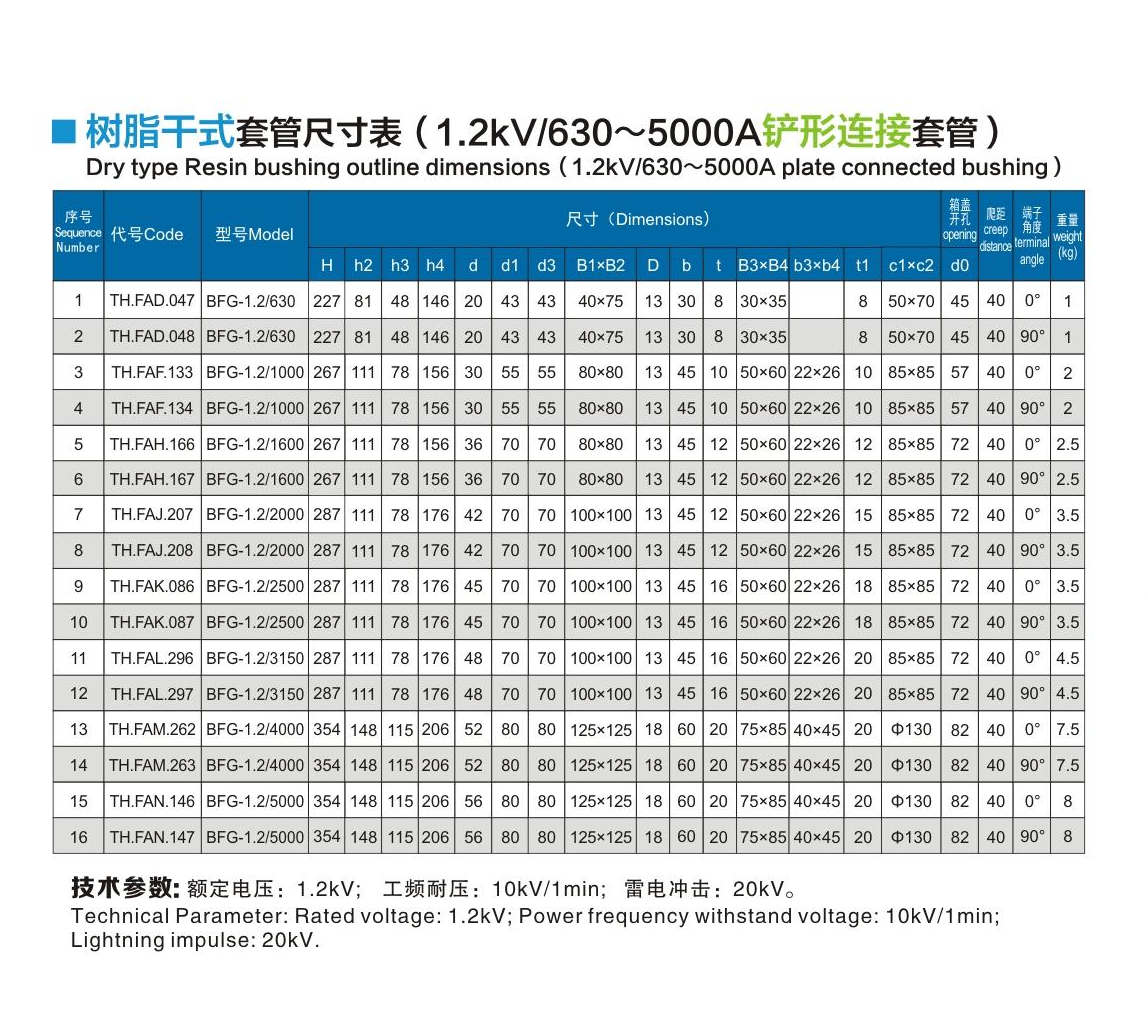 樹脂干式套管1.2kV/630~5000A鏟形連接套管