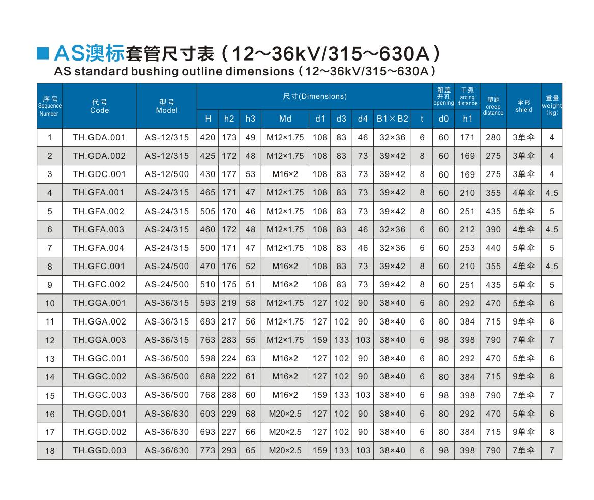 AS澳標(biāo)套管12~36kV/315~630A