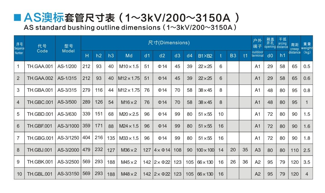 AS澳標套管1~3kV/200~3150A