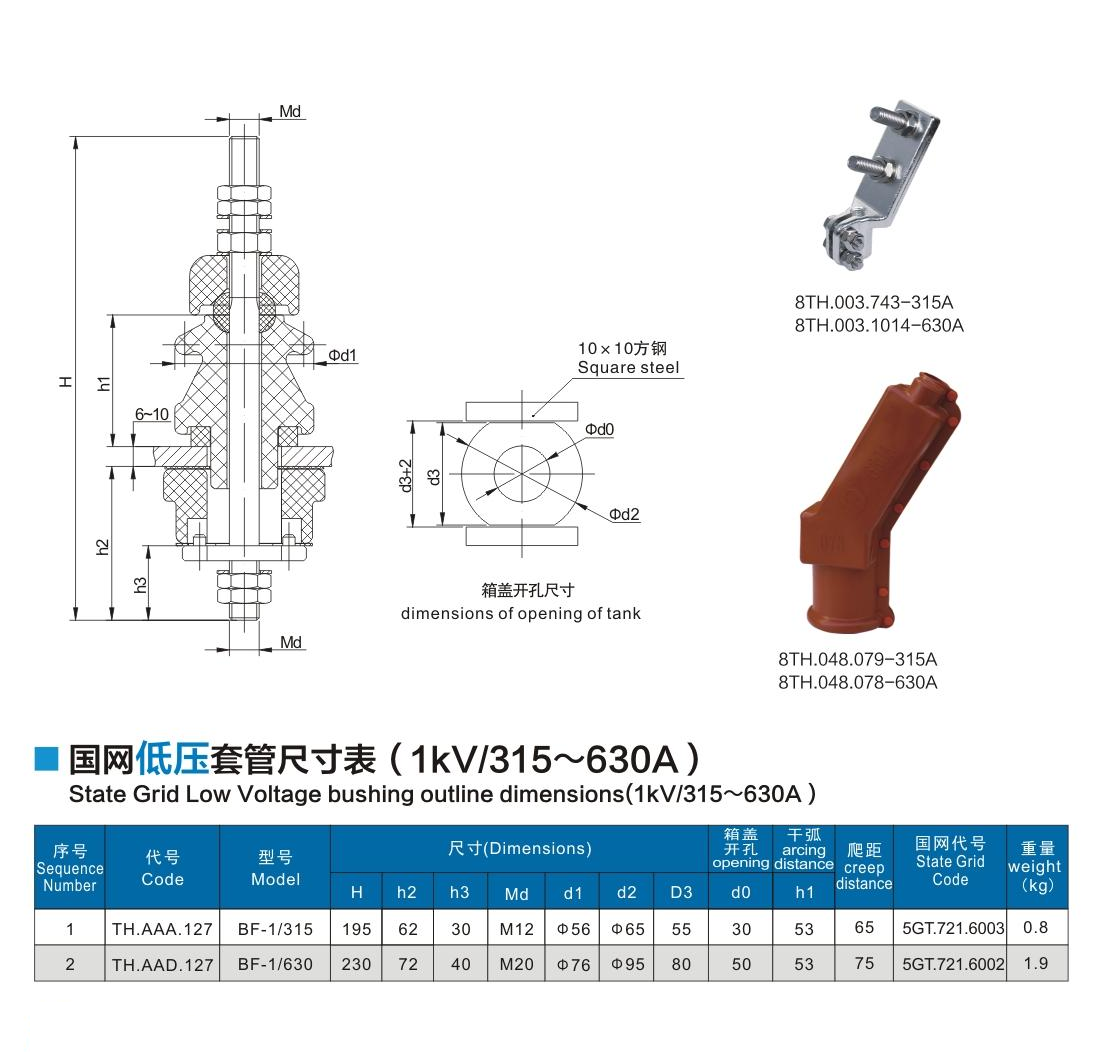 國網(wǎng)低壓套管1kV/315~630A